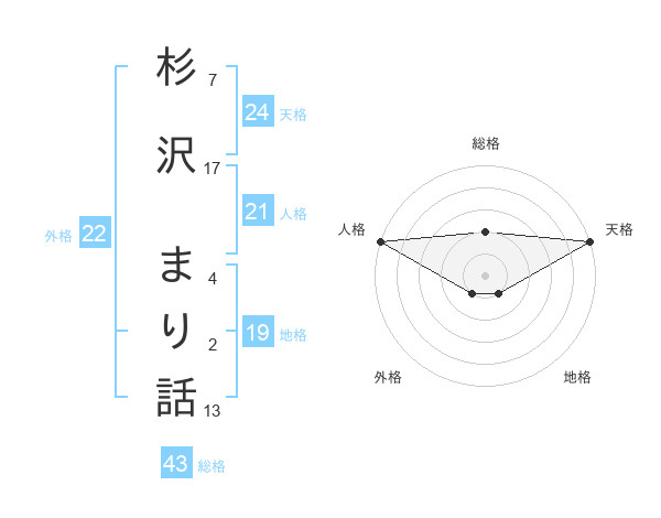 杉沢 まり話さんを姓名の画数から五運を鑑定
