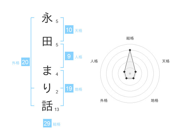 占い結果は姓名判断である以上、良い場合も悪い場合もありますが、決してお名前を誹謗中傷するものでなく、画数の自動計算によって得られたものです。また、本サイトの検索によって得られた鑑定結果で、第三者を誹謗中傷したり名誉を棄損するような行為を禁じます。