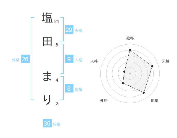 塩田 まりさんの天格は29画の4点!