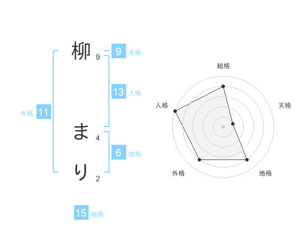 柳 まりさんの総格は15画の4点!