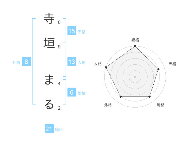 寺垣 まるさんの総格は21画の5点!