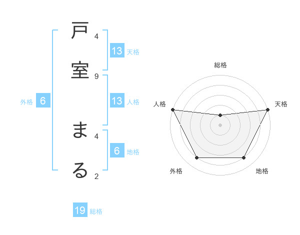 戸室 まるさんの天格は13画の5点!