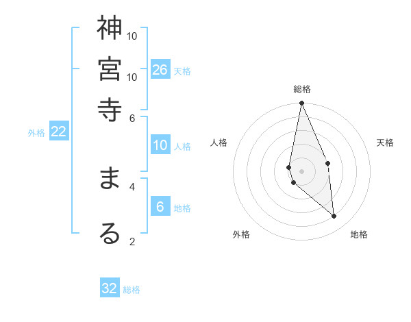 神宮寺 まるさんを姓名の画数から五運を鑑定