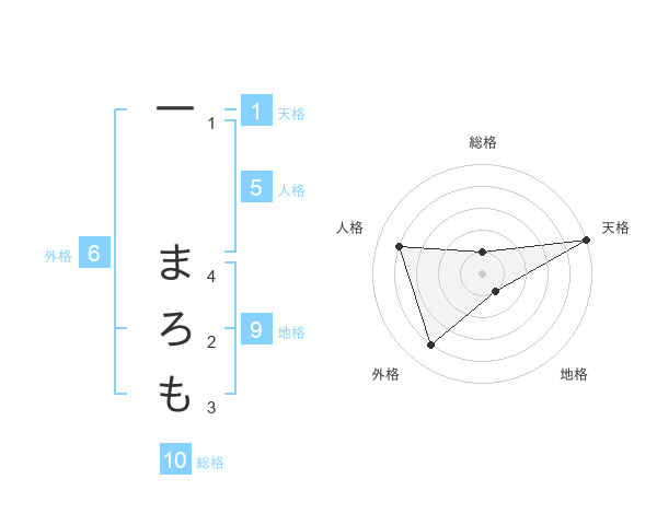 一 まろもさんの天格は1画の5点!
