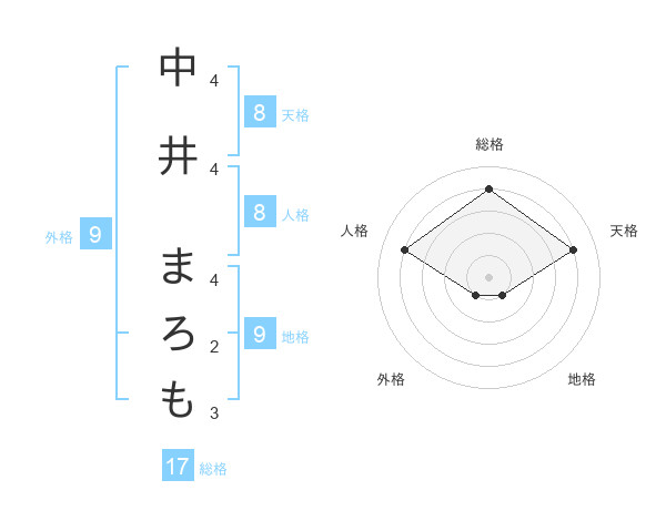 中井 まろもさんの天格は8画の4点!