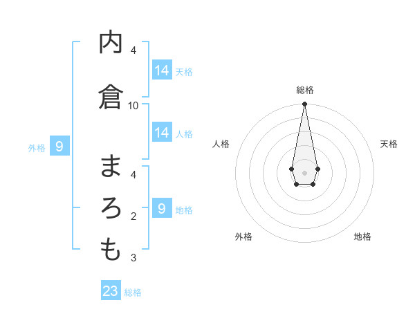 内倉 まろもさんの総格は23画の5点!