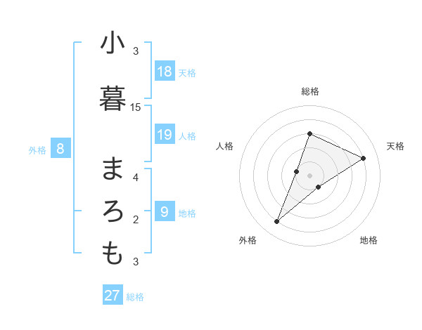 小暮 まろもさんを姓名の画数から五運を鑑定