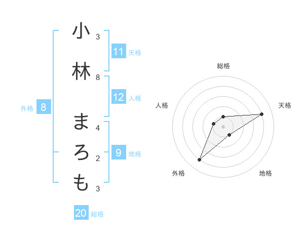 小林 まろもさんの総格は20画の1点!