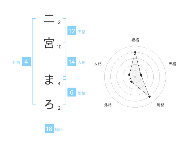 二宮 まろさんの総格は18画の4点!