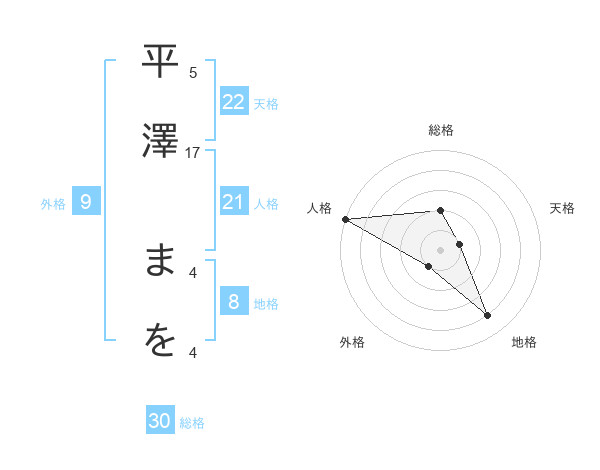 平澤 まをさんの天格は22画の1点!