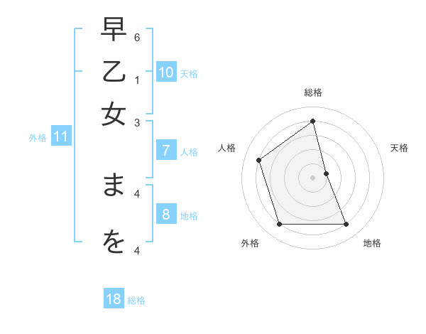 早乙女 まをさんの外格は11画の4点!