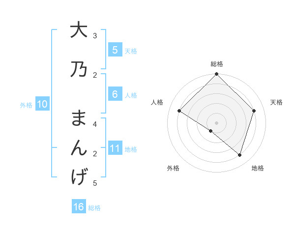 大乃 まんげさんを姓名の画数から五運を鑑定