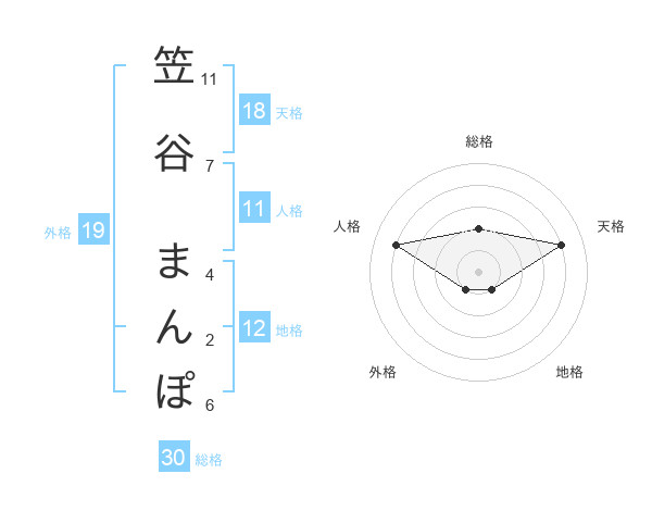 笠谷 まんぽさんを姓名の画数から五運を鑑定