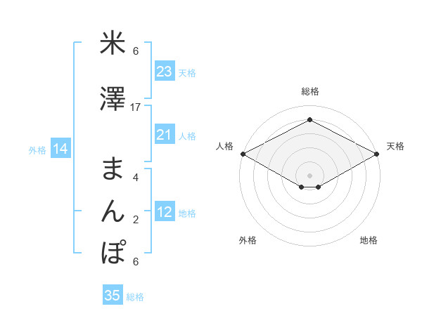 米澤 まんぽさんの天格は23画の5点!