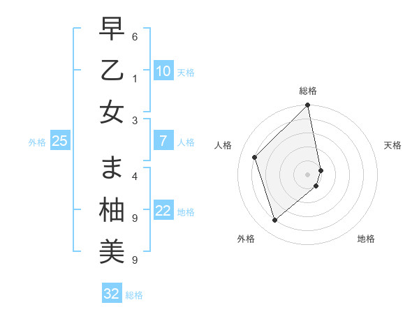 早乙女 ま柚美さんの総格は32画の5点!