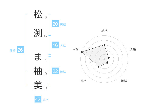 松渕 ま柚美さんの総格は42画の3点!
