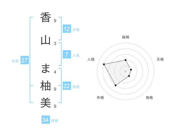 香山 ま柚美さんを姓名の画数から五運を鑑定