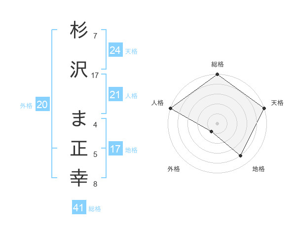 杉沢 ま正幸さんを姓名の画数から五運を鑑定