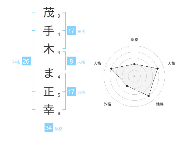 茂手木 ま正幸さんを姓名の画数から五運を鑑定