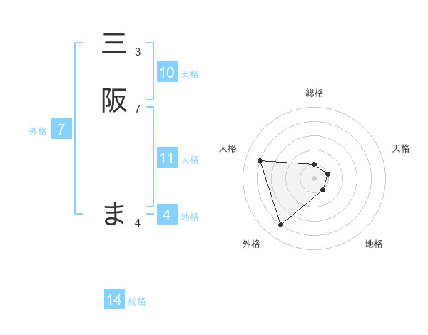 三阪 まさんの総格は14画の1点!