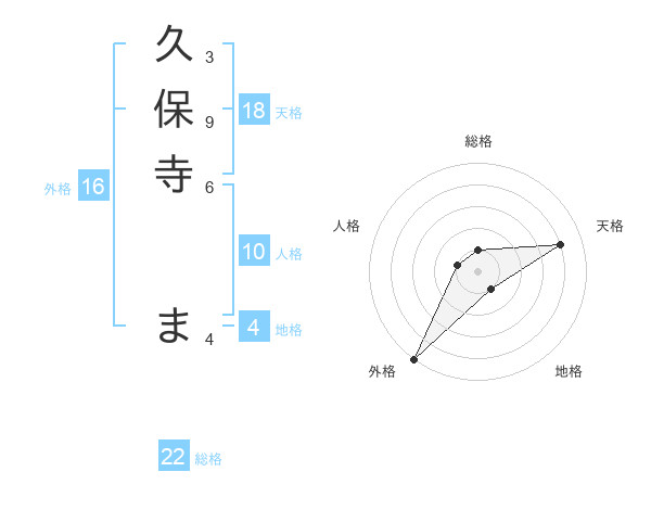 久保寺 まさんの天格は18画の4点!