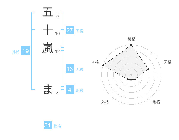 五十嵐 まさんを姓名の画数から五運を鑑定