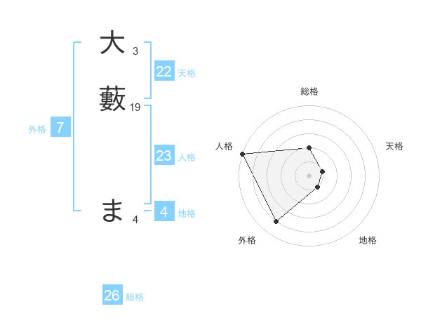 大藪 まさんの天格は22画の1点!