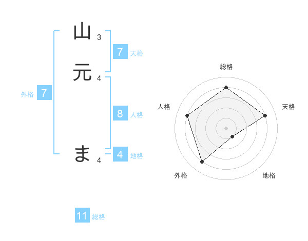 山元 まさんの総格は11画の4点!