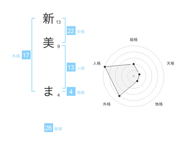 新美 まさんの天格は22画の1点!