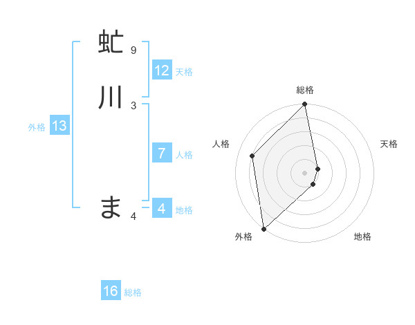 虻川 まさんの外格は13画の5点!