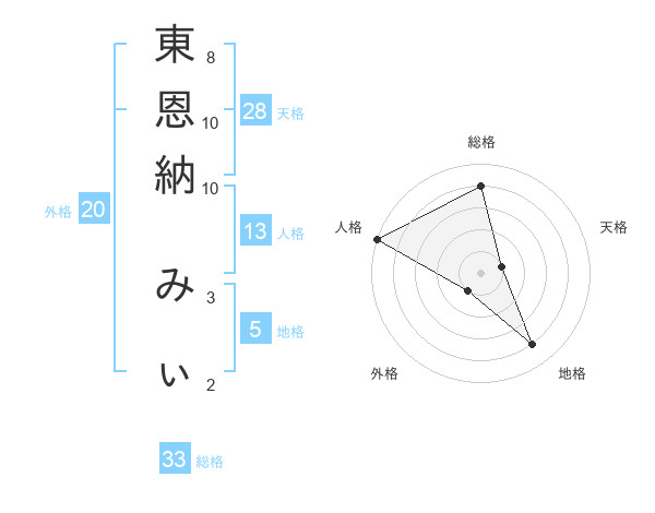 東恩納 みぃさんを姓名の画数から五運を鑑定