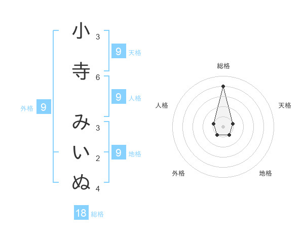 小寺 みいぬさんの天格は9画の1点!