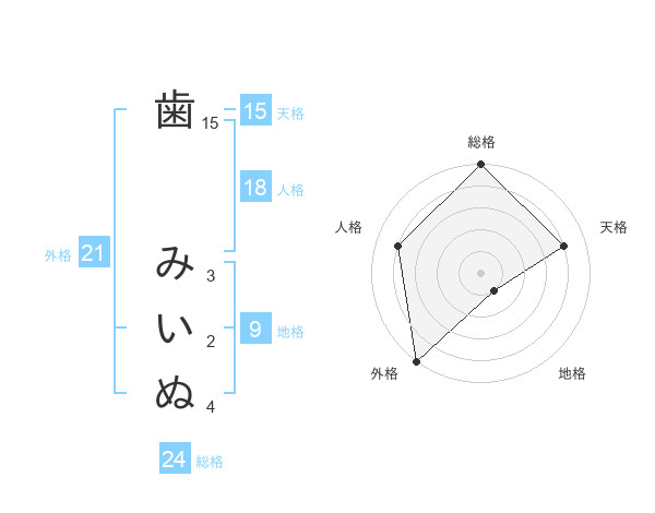 歯 みいぬさんの総格は24画の5点!