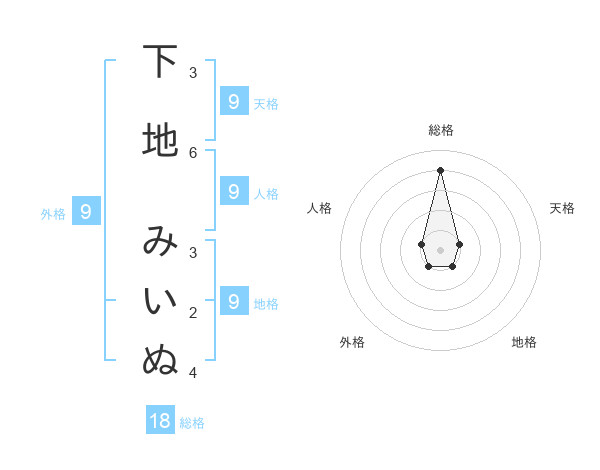 下地 みいぬさんを姓名の画数から五運を鑑定