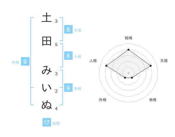 土田 みいぬさんを姓名の画数から五運を鑑定