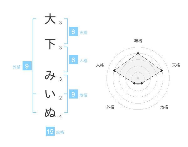 大下 みいぬさんを姓名の画数から五運を鑑定