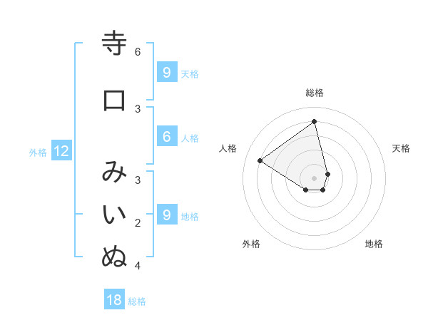 寺口 みいぬさんを姓名の画数から五運を鑑定