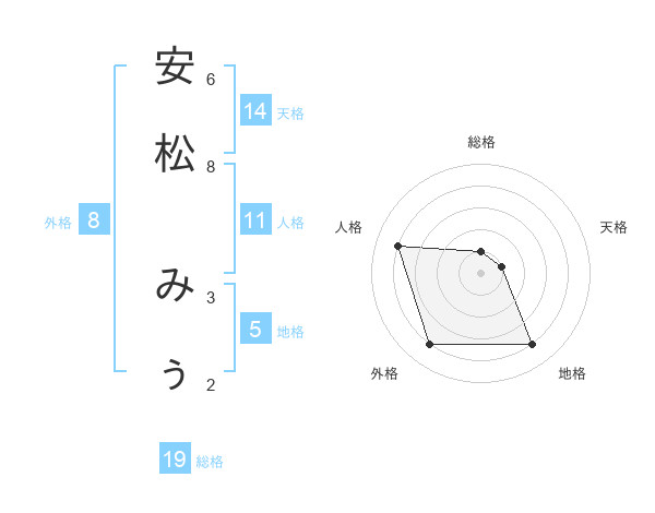 安松 みぅさんの外格は8画の4点!
