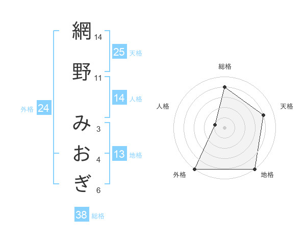 網野 みおぎさんの総格は38画の4点!