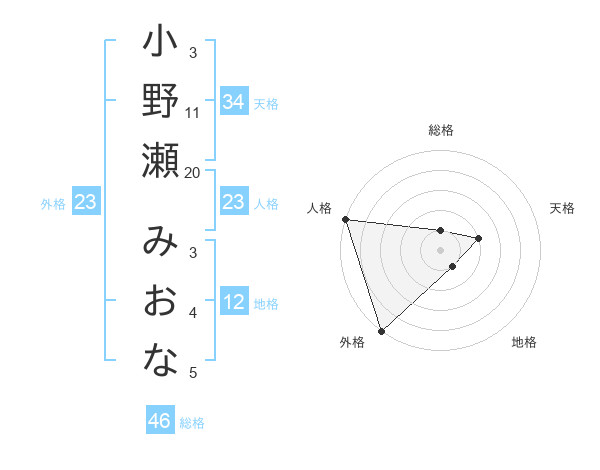 小野瀬 みおなさんの外格は23画の5点!