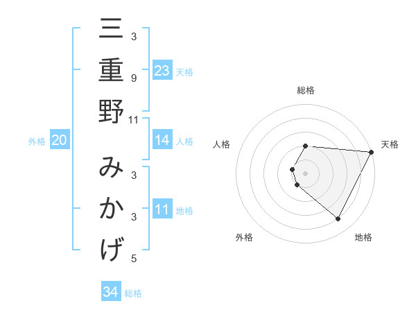 三重野 みかげさんの天格は23画の5点!