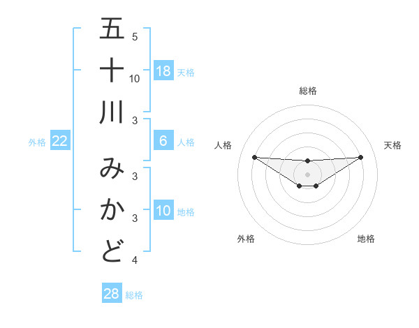 五十川 みかどさんの総格は28画の1点!