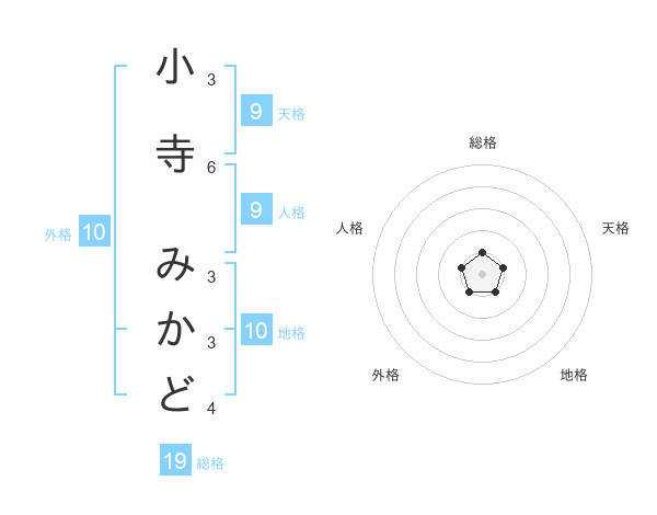 小寺 みかどさんの総格は19画の1点!