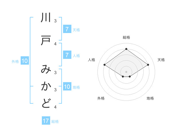 川戸 みかどさんを姓名の画数から五運を鑑定