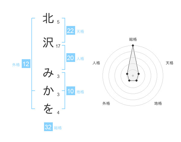 北沢 みかをさんを姓名の画数から五運を鑑定