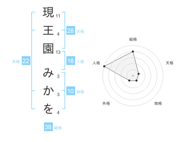 現王園 みかをさんを姓名の画数から五運を鑑定