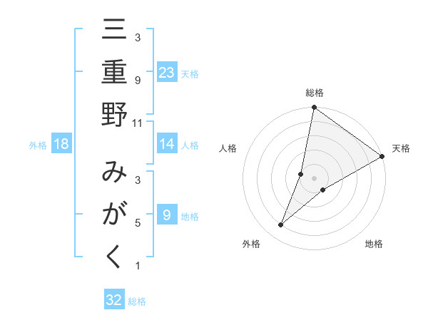 三重野 みがくさんを姓名の画数から五運を鑑定