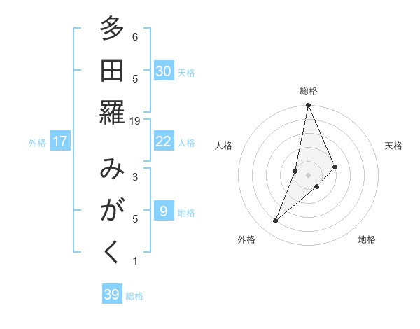 多田羅 みがくさんの外格は17画の4点!