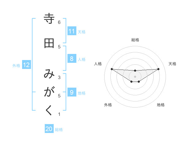 寺田 みがくさんの総格は20画の1点!
