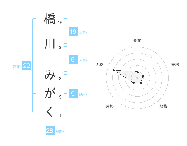 橋川 みがくさんを姓名の画数から五運を鑑定